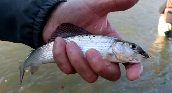Я вирішив нічого не вигадувати і зарядив снасть двома ідентичними сирітками, що розташовувалися зовсім поруч. Ясно, що в такій воді риба не полюватиме зверху – вона притислася до дна. Кілька перших проводок дали зрозуміти, що з глибиною я не помилився і буквально за якісь дві хвилини відчув такий бажаний опір. Невеликий харіус з сиріткою в роті потрапив до підсака і благополучно поплив геть.