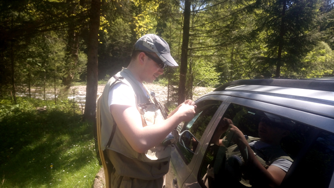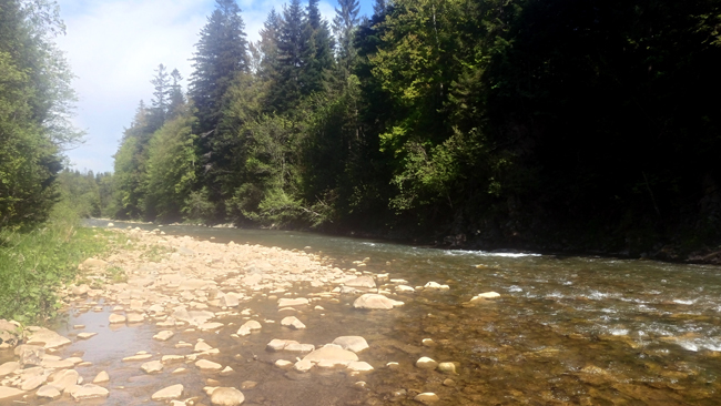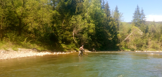 Таким чином, перша вилазка на ріку відбулася якраз 20 травня, при чому складалася із двох груп. Перша вирушила з самого ранку, друга прибула на місце о другій дня. Під час зустрічі хлопці поділилися новинами – риба є, вона підросла і доволі активно харчується. Тішила й сама річка, адже вона була доволі повноводною і чистою. Ми залишили першу групу на місці, а самі вирушили уверх за течією. Після короткого обіду та збору вийшли до води. Ясна річ, снасті облаштували за правилами FIPS: обрізані підліски, відстань між мухами 50 см тощо.