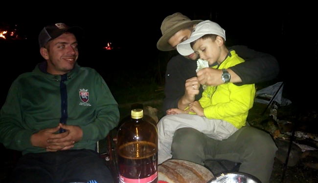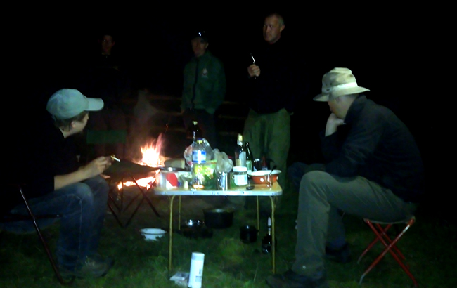 Хтось наливав, хтось ділився враженнями, хтось зручно розмістився в кріслі. Весело потріскували поліна в багатті, надокучливо дзижчали комарі, десь заіржав кінь, десь зарохкав кнур. Сутінки опускалися на наші намети, гори нашіптували тиху колискову…
