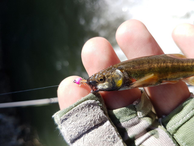 Незважаючи на перспективний харіусовий ривок вже на першому закиданні, наступне клювання я отримав години за дві… До того мене набрала щаслива Альона, яка злапала дуже незлу райдужку, під 30 см. Це додало мені як настрою, так і мотивації, а також розуміння, що риба є. Нарешті знаходжу класичний “злив”, спершу наколюю аж трьох, потім-таки ловлю двох піриків, одного непоганого, сантиметрів на 25. Початок є, це перша риба сезону!