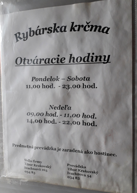 Тепер нам необхідно купити дозволи на риболовлю. У Словаччині окрім самих ліцензій необхідно придбати рибальський квиток. Можна на тиждень (1,5 євро), можна на рік (7 євро). Продають усе це щастя в рибальській корчмі кілометрів за 5 від нашого котеджу.