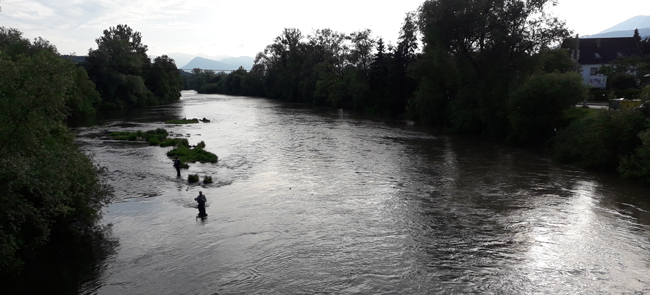 Якщо ж вода висока – краще туди не пхатися. Друга частина, одразу за мостом – це вже Сян+Дунаєць. Не знаю, як назвати по-іншому. Тут і ями величезні, і рівні як дзеркало плеса, при цьому з сильним потоком води, і м’якенькі водорості, що захищають ваші вольфрамові німфи від зачепів за каміння.