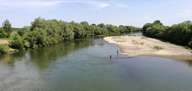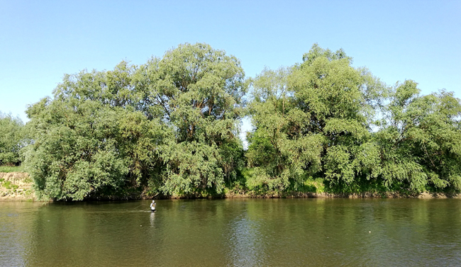 Я пройшов досить солідну відстань, поки не побачив зручний спуск до води. Розумів, що риба тримається протилежного берега (ну, як завжди), куди дістатися дуже не просто. Вже посеред ріки течія зносила, що знову змушувало згадувати про комфорт. У мене були лише поодинокі виходи, але нічого цікаво. Ні на жука, ні на мокру. Біля мене розташувалися Юра та Діма і вони спіймали по невеликому голавлику. Я все ще шукав місце, де можна зручно розташуватися. І повернувся назад.