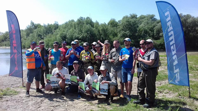 Нарешті, прийшли учасники, серед яких визначили переможців. Ганна, хоч і зловила під три десятки голавлів, не мала нічого достойного по розміру. У Сергія ситуація аналогічна. Мені похвалитися теж було нічим, а найбільший клен Діми сягнув 19-и сантиметрів. Тому переможцем визнали Юрка, який упіймав рибу на 30 сантиметрів. В нагороду за старання він отримав класний флайбокс від Flagman та ще набір усіляких милих дрібничок. Як і всі ми – спонсор постарався, а Андрій Мамай не шкодував подарунків.