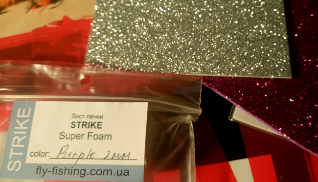 У коробці з пінкою виявилося кілька пакетів необхідного матеріалу, отриманого від Дмитра Петруняка на останніх змаганнях. Це була голографічна та щільна пінка від Strike!, що сподобалася мені з першого дотику. Із нею дуже просто працювати, оскільки вона міцно тримається на гачку, а ще має дуже цікаве забарвлення.