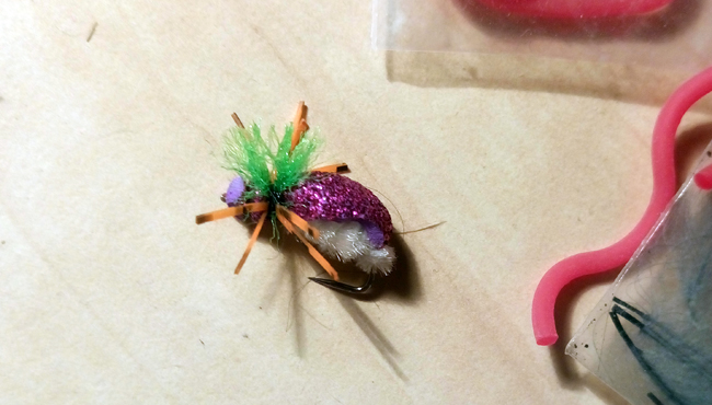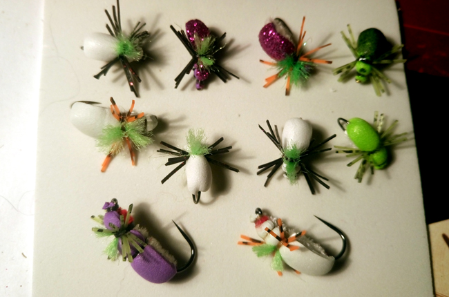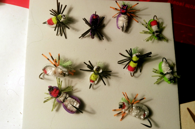 Далі «накивав» пінку на синель, примотував лапки (із силіконових променів) та елемент видимості – червоний або зелений антрон. Звісно, лакував усі вузли для міцності. Також у коробку кинув кілька ред-тагів, гусениць, чорнобильських мурах.