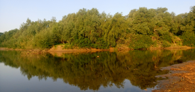 Зрештою, хороша локація була знайдена – кілька цікавих кущів та дерев, спокійна течія. От і перші голавлі, але не великі, до 20 сантиметрів. Вони активно атакували чи не найбільшого мого жука. І тут дзвонить Юра – ходи, каже, до мене, тут ловиться добре. Подумав грішним ділом, що ловиться щось більше, аніж в мене, і залишив цікаву локацію.