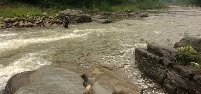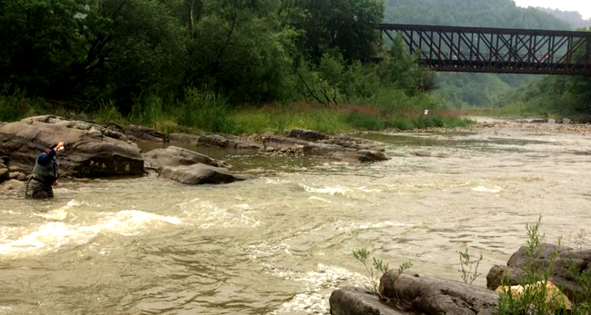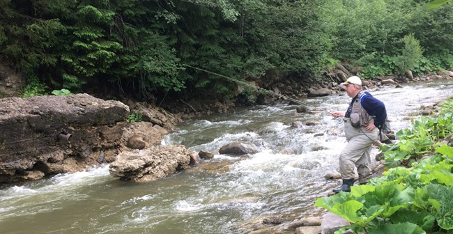 Покети (короткі перекати у вигляді кишені) після дощів були досить повноводні і швидкі. Роблю декілька проводок. Зупинка, підсікаю. Рибу зносить до другого покету, а якщо там не зловити у підсак, то на наступних порогах риба злетить. Всупереч всім правилам, я біг по камінню і стрибав у воду і на межі порогів я запускав її у підсак. Ризик щось зламати ходив за мною. Петро за мене переживав. Таких було три. Це місце було для непростим, я ніколи не вмів в такому провести гарно мушки. Це була перемога над собою, настав спокій. Мої рухи далі були спокійні.