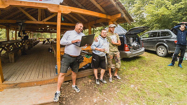 Приїхавши на базу ми з Олегом взялися за підрахунок балів. Виявилося, що перше місце має дістатися або Максу або Андрію, оскільки в кожного з них у підсумку назбиралося 18 пунктів (це загальна сума місць за чотири етапи.