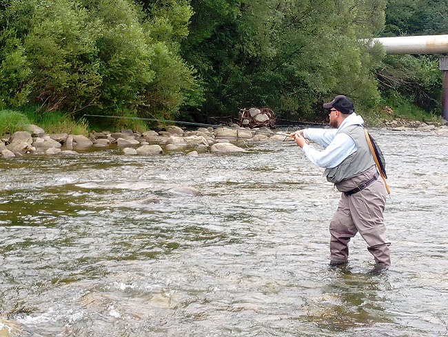 Ми знову сідаємо в авто до Андрія та вирушаємо на Мізунку. Цього разу нам з Володею випадає красивий та елегантний пул, з великим різноманіттям – можна ловити і на суху, і на німфу. Починати має Володя. Він не поспішає – акуратно розмотує снасть, викурює цигарку і робить перший закид.