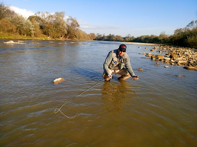 Аби трішки розім’яти кісточки, вирішили поїхати на чисту воду, на Стрий. Там є кілька точок, де досить багато риби, тому не гаяли часу на експериментальні ділянки. І справді, на чистій воді харіус пристойно відгукувався на суху мушку. Ловити я вирішив відродженою вудкою ElkHorn третього класу. Правда, здавалося, що для повноти картини їй легше буде працювати із шнуром четвертого класу.