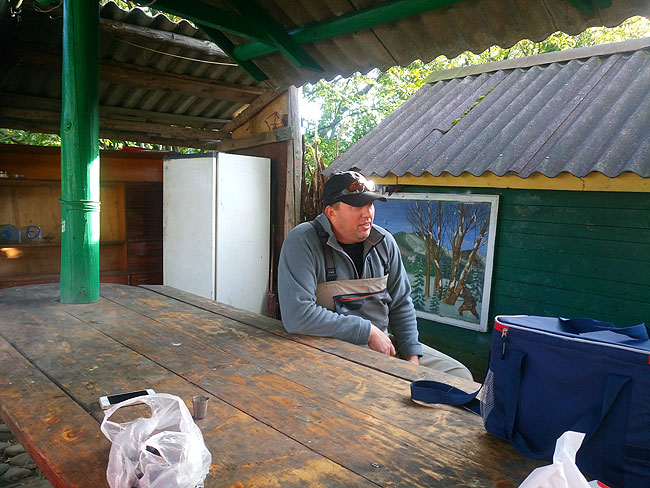 У четвер до нас мала приєднатися велика кількість нахлистовиків, які поспішали на вечірку «Зустріч старих друзів». Діма пішов вниз розмічати свої кілометрові пули, я ж залишився аби повідкривати бунгала та замовити швидку вечерю. Першими прибули закарпатці – Ігор Анісімов з Евеліною, Богдан Цебрик з барткою і виноградом та Іван Повхан з величезним задоволенням.