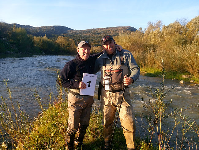 А коли вже завершилася офіційна частина змагань, Дмитро Петруняк вийшов наперед і ледь не запаморочив мені голову. Виявляється, моя дружина, на річницю шлюбу приготувала мені подарунок – нову нахлистову куртку.