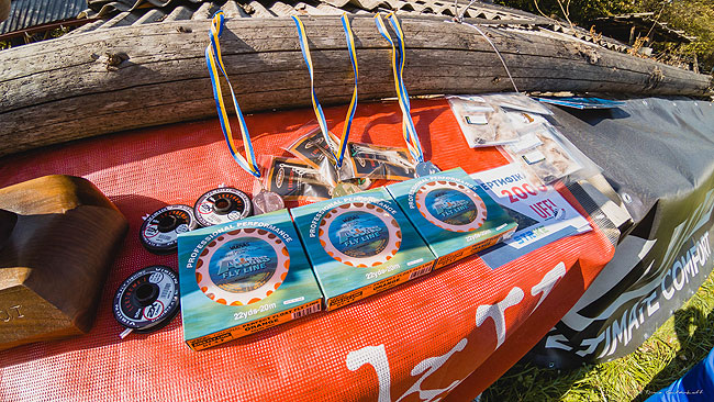 Цікаво й те, що на ці змагання, які стали рейтинговими, організаторам вдалося залучити досить багато спонсорів. Ясна річ, Дмитро Петруняк та його компанія Strike! як завжди приготувала для учасників велику кількість призів. Вічний спонсор, як не крути! УЛН вже звично видає трьом переможцям грошові сертифікати, за які можна придбати будь-який товар в магазині fly-fishing.com.ua. Уперше до змагань долучився і свалявський осередок «Ощадбанку», який забезпечив усіх учасників великою кількістю мінеральної води – це постарався Роман Яковченко, який привіз воду ще задовго до змагань. Так само вперше УЛНівців підтримав Перший Західнорегіональний рибальський портал, засновник якого Андрій Мамай передав учасникам різноманітні флай-бокси та коробки. І особливо приємно те, що до турніру вдалося залучити київську компанію «Риболов-сервіс». Звідти передали три шнури 4-го класу від Varivas, а також набори повідців і луп-конектори. Особлива подяка Роману Татарникову – директору Salmo Group Україна та Сергію Пічугіну – багаторічному головному редактору рибальських журналів, яких, на жаль, в нашій державі вже більше не залишилося. Як видно – спонсорська допомога виявилася більш ніж пристойною.