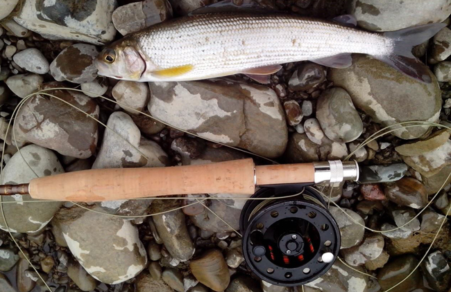 От він вже і потримав перші трофеї – симпатичного харіуса.