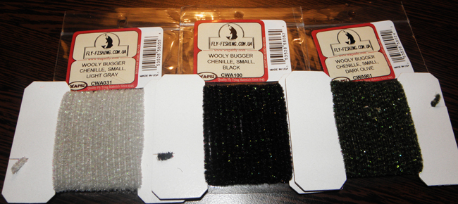 Ще мене зацікавили різні синелі – є для вулі-баггерів, є для виготовлення мухи Сан Хуан Ворм (це дуже простий хробак, недавно мені такого з Канади прислали), а ще є мікросинель для мокрих мух. Наразі я залишив цю продукцію на потім, до мокряків у мене особлвиий пієтет.