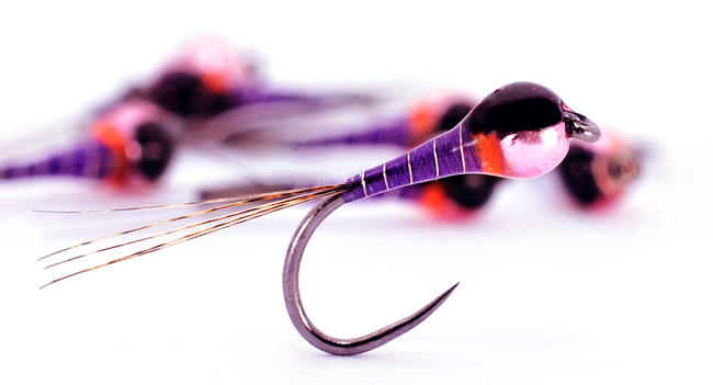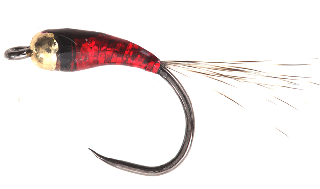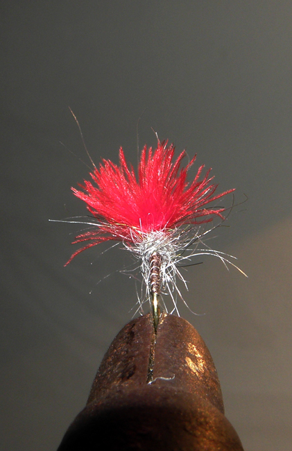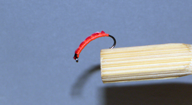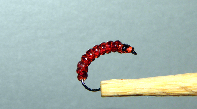 Не скажу, що вірю в цю муху, але буду пробувати. Один з варіантів зроблений із червоної нитки Gral від Hends та червоної гумочки з якоїсь спініноової приманки, а інший – з вінілрібу. Німфи без свинця, тому використовувати їх слід в якості підвісних мух. Цікаво спробувати їх на місцях, де могла б триматися біла риба типу рибця чи підустви.