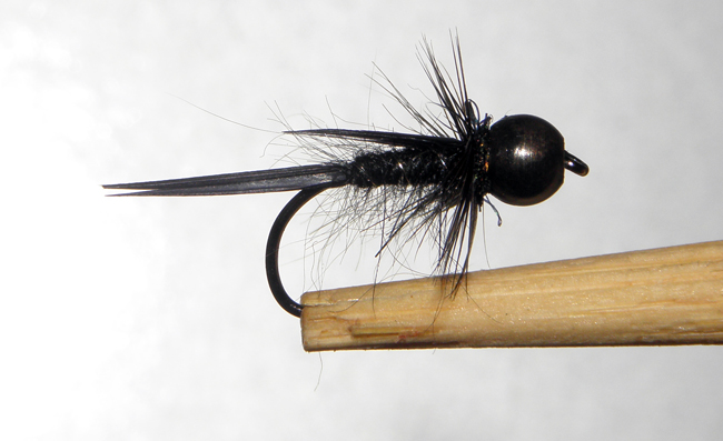 Ще вище – щось спільне із мокрим ред-тагом та ред-блек зулу. Достойна муха, яка принесла мені багато-багато форелі, правда, не в нас, а на Дунайці. А у нас на таку в кінці літа славно ловився саме кленик. Матеріали: пару пір”їн чорної курки, куріпка, чорний натуральний даббінг (на тіло), яскраво-червоний синтетичний блискучий даббінг (на задок). Куріпку можна і не давати. Але от на одну муху витратити три пера чорної курки мус.