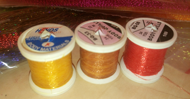 Насамперед, я звернув увагу на різного роду даббінги. Насправді, у мене є більше сотні пакетів найрізноманітнішого даббінгу від найрізноманітніших фірм. Правда, найбільше користуюся лише деякими – яскраво-помаранчевими, натуральними сірими та чорними, іноді натуральними зеленими та коричневими. Вже не раз стикався з тим, що нахлистовики-початківці мають проблеми з даббінгами, мовляв, з чого зв”язати хоча б ту ж “шоколадку”? За оригінальною легендою, її слід робити з даббінгу суперфайн махоґані, а такого у нас не знайдеш.