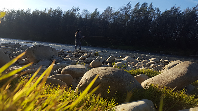 У мене півтори години часу, купа мух в коробці, і одна мета – піти від нуля. Вирішую понишпорити спершу на козирних точках (там глухо, сама бистрянка), далі на менш перспективних (аналогічно), і врешті-решт переходжу до берегової зони, там де синіють водяні лабіринти. Закид, вихід і маленький харіус опинився в підсаку. Фух, тепер можна розслабитися – третій тур без нуля!