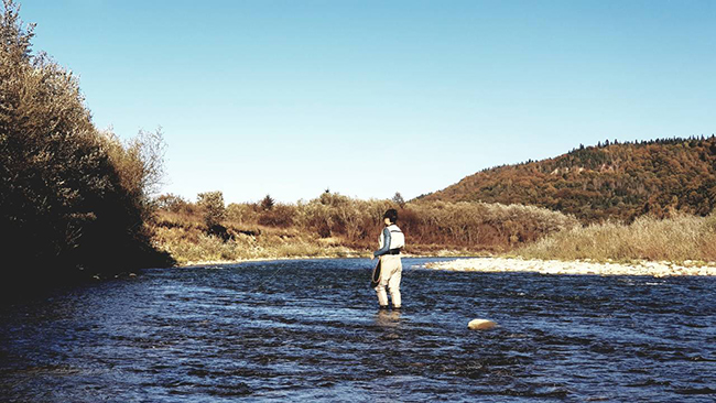 Одразу вирішую, що не буду ловити на одну мушку. Кладу попередника до коробки, витягую натомість іншу. На мить піднімаю голову. Навколо все таке… осіннє. Багряне листя практично осипалося на береги, голі дерева пронизують своїми гілками насичено-сірий туман. Попереду не видно геть нічого. Шум ріки, як коректор, замазував усілякі рутинні трабли, я відчував, що він приносить якесь умиротворіння та спокій. Із такого стану мене вивів Володя – відразу після мене він упіймав свого харіуса.