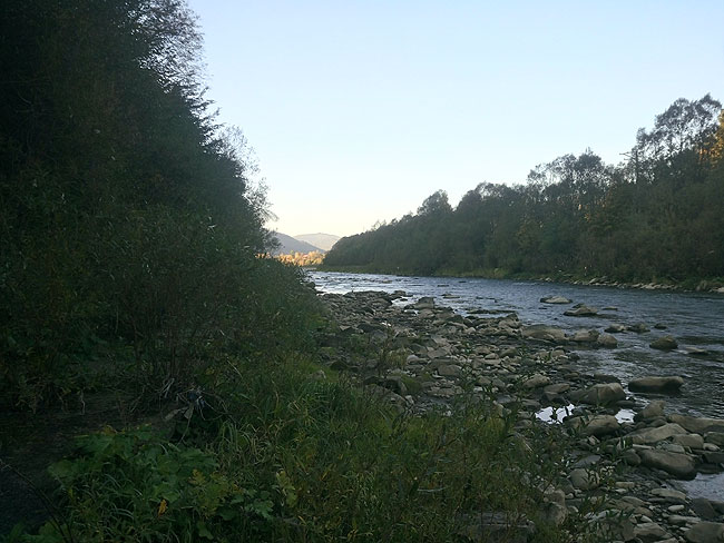 Коли ми з ним вийшли до ріки то я зрадів – на нас дивився нічим не перспективний мілкий перекат, де я б ловив з повною зневірою.