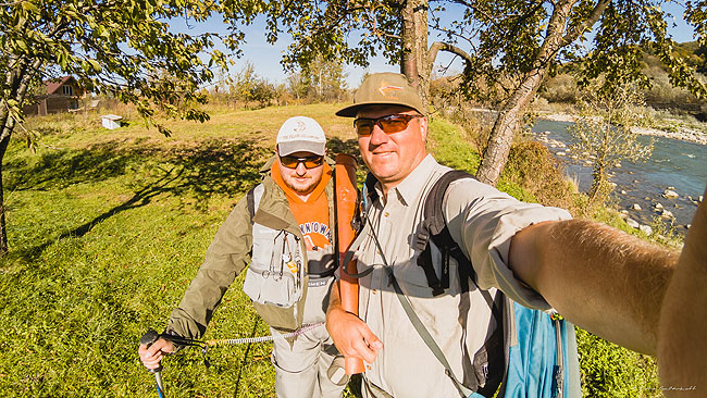 Ми зустрілися за мостом, де сходяться ріки і поїхали туди, де рибалили вчора. У мене був свій інтерес – я дуже хотів подивитися за тим, як ловить Іван Фіцколинець. Мені було цікаво, як він читає річку, як вибирає місця, як розуміє ситуацію на воді.