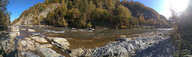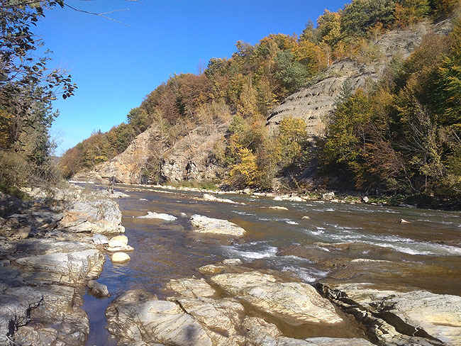 Ми рухалися вверх, до геть незвіданих місць, де я ніколи раніше не бував. Тут трішки окультурили територію – збудували міст, вирівняли дорогу. Добре, що зв’язку нема – ніхто не подзвонить, не потурбує. Лише шум річки, щебетання пташок, мелодійна пісня вітерця і сухе похитування вільного від листя гілляччя.