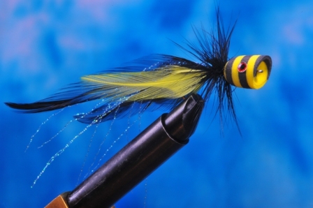 | Хвост: | пары черных и желтых перьев из скальпа петуха, волокна Krystal Flash |