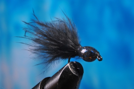 | Очень уловистая и очень простая в изготовлении мушка. Изготавливается следующим образом, примерно на середине цевья крепится хвост, в том же месте крепятся блестящие волокна, далее закрепляются поочередно несколько пучков волокон направлением кончиков в сторону ушка крючка, каждый отдельный пучок после закрепления заворачивается в сторону хвоста так, что бы волокна распределялись более-менее равномерно вокруг цевья. После формирования головки приклеиваются глазки и можно нанести полоски по телу водостойким маркером. Обязательно необходимо вычесывать подшерсток из синтетики. | |