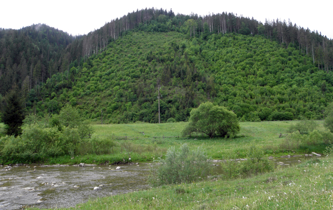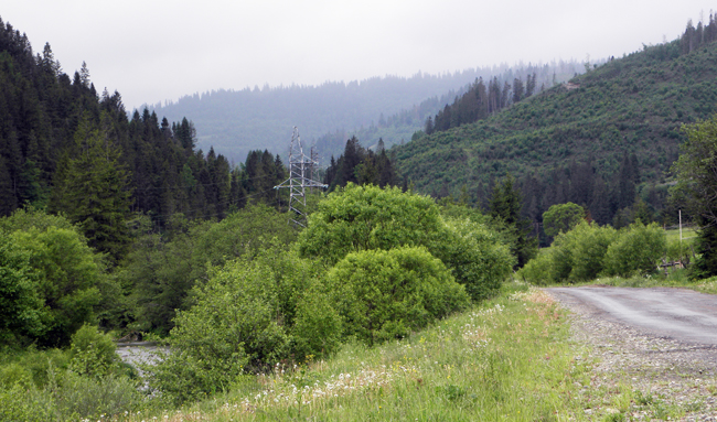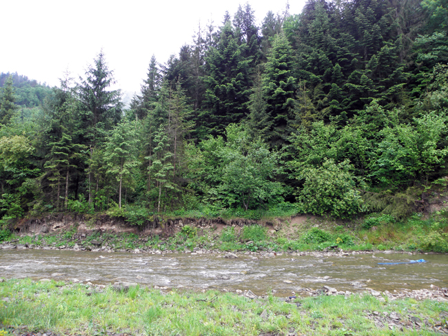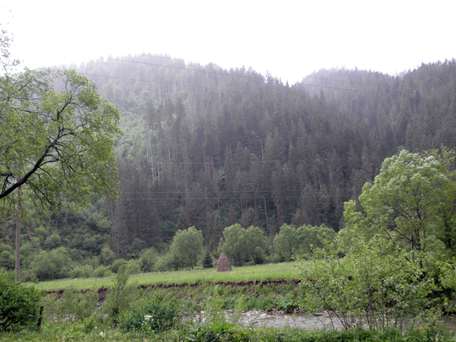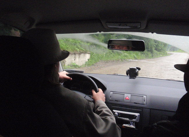 Юра тим часом рибалив під мостом. Його мокрі теж дали результат – отже, риба дуже активна і голодна. Пересидівши в авто опади ми вирішили ще трохи проїхатися, вверх по течії, в глибокі гори. За вікном виднілися симпатичні вершини і ознаки того, що частина України все ще не вийшла з кам’яного віку: сім’я орала на полі плугом. Замість коня були люди. Сумна картина…
