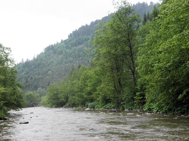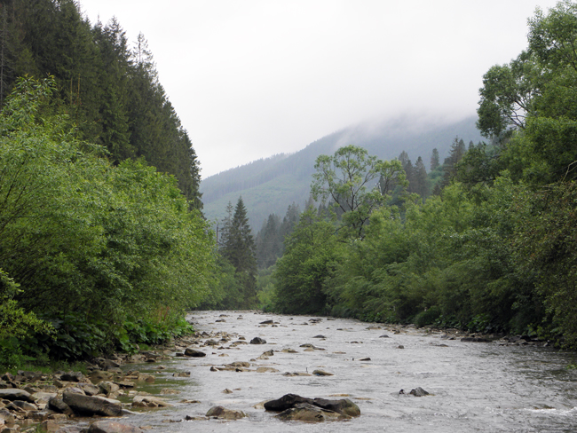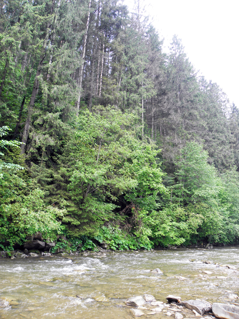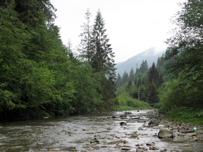 О п’ятій ранку Геник, я та Юра взяли курс на гори. Прогнози погоди щось тринділи – одні обіцяли дощі, інші сонце, ще інші хмарність з проясненнями і можливі опади – ніколи не помилишся… Насправді ж було досить похмуро і де-не-де моросило. На злитті побачили, що великим рікам гаплик – все ж львівські дощі не обійшли Карпати боком.