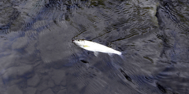 Можна сказати, що риба стояла усюди, де тільки можна, але найбільше задоволення я отримав, коли ловив у не зовсім харіусових місцях. Після того, як пройшов дощ, я зауважив кілька виходів харіуса під самим берегом.
