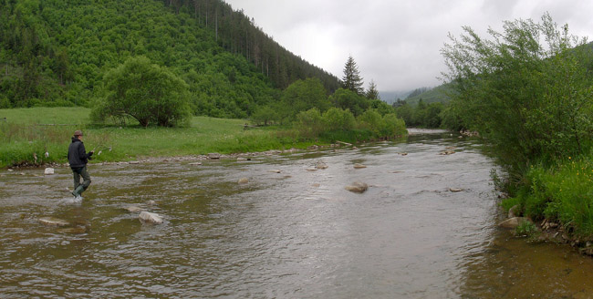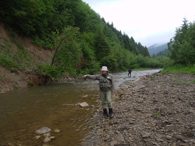 Геник, ясна річ, узявся за суху, я ж спершу спробував ловити на німфи, а Юра чергував сухі з мокрими. Кілька «тичків» – це все, що стосувалося німфи. Натомість, на сухарика почалися виходи. Геник одного наколов, одного спіймав. Після цього я вирішив, що прийшов час сховати француза і трохи розім’яти праву руку. Але спершу треба було знайти правильну муху.