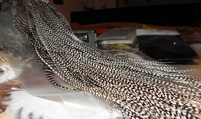 Після цього беремо залишки від цих пер і общипуємо борідки. Їх можна підрізати. По довжині крила закріпляємо їх ниткою. Це додає об”єму і кращу видимість на воді.