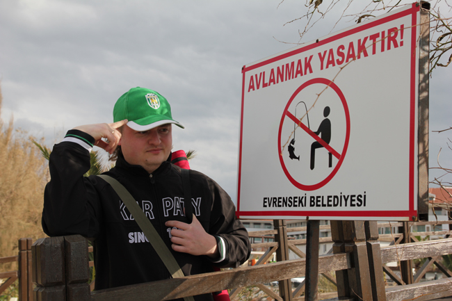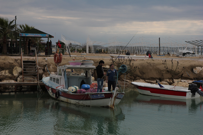 На кам’яному березі річки, назву якої я не запам’ятав, сидів чолов’яга в шкіряній куртці і в теплій шапці. Вітряно – так, але не настільки холодно, щоб вдягати шапку. Взагалі, зараз на півдні Туреччини щось середнє між ранньою весною і пізньою осінню. У руках дядька жилка з трьома гачками. У відрі кругла штука, на якій ця жилка намотана. Вудки нема. Він розкрутив жилку з грузиком і закинув її метрів на 5-7, не більше. Потрохи підтягує до себе. Судячи зі всього, риби він ще не зловив.